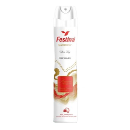 محصول فوق اسپری خوشبو کننده بدن فستینا 200 میل Festina (زنانه) با رایحه های مختلف می باشد ، ماندگاری  این اسپری 48 ساعت میباشد و این بدان معناست که میتوان پس از  گذشت یک روز  عطر و رایحه آن را بر روی لباس و بدن خود احساس نمایید. این محصول با اسانس قوی بدن و فضای محیط را خوشبو می‌کند . این اسپری ها در تماس با سطح پوست  هیچ حساسیت و عوارضی ندارد. این اسپری را از فاصله 15 تا 20 سانتی متری به بدن و لباس خود و یا محل مورد نظر اسپری  کنید.