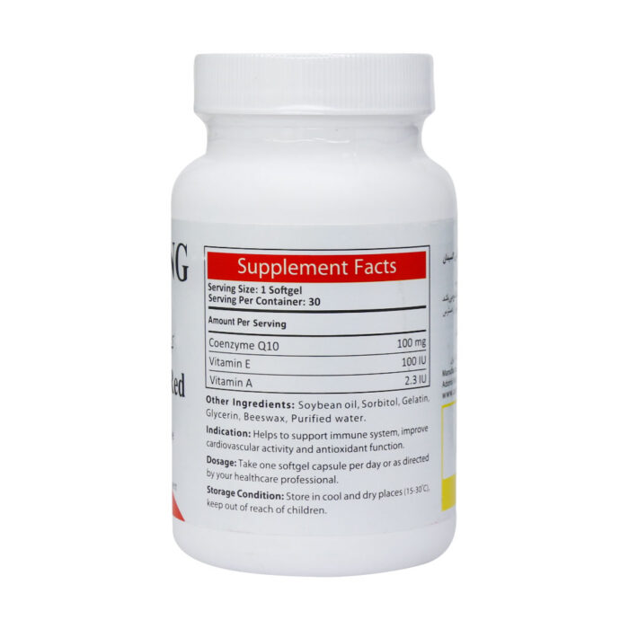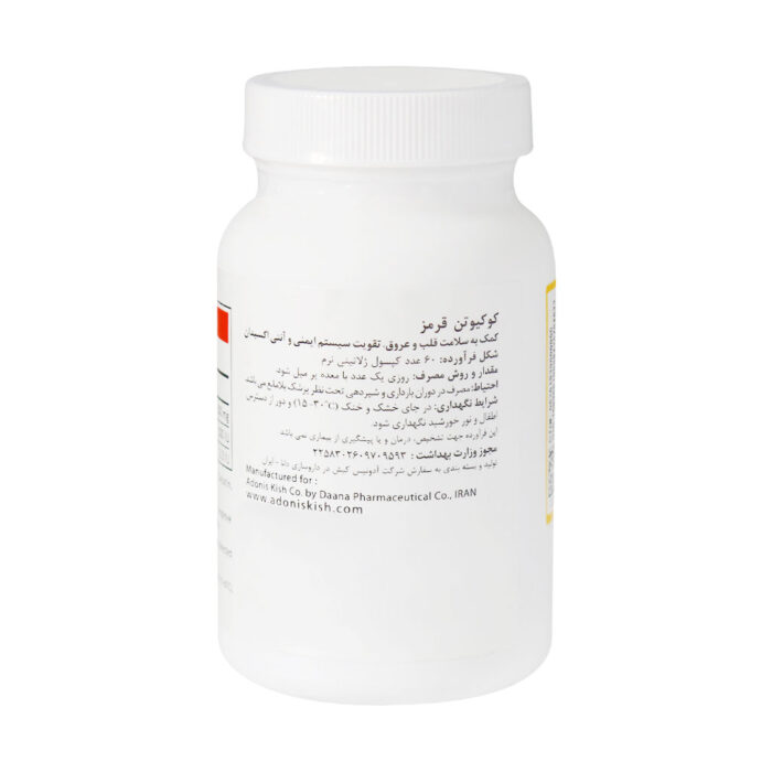 سافت ژل کوکیوتن قرمز ۱۰۰ میلی گرم آنتی ایجینگ همراه با ویتامین E و A بوده و به سالمندان، بیماران قلبی و مصرف کنندگان داروهای استاتین جهت داشتن افزایش انرژی و سلامت قلب توصیه می‌شود.