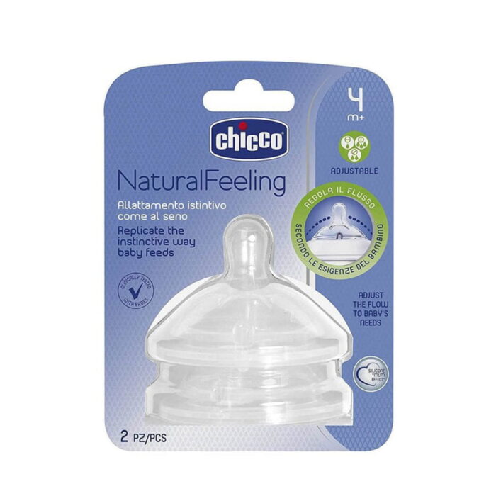 سر شیشه نچرال فیلینگ چیکو دارای جریان قابل تنظیم برای شیر خوردن نوزاد است. این محصول برای کودکان در سن ۴ ماهگی در نظر گرفته شده و در بسته بندی آن ۲ عدد سر شیشه موجود است.