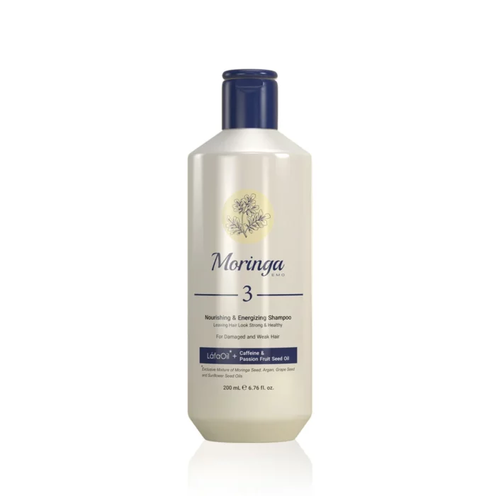 شامپو مغذی و انرژی‌بخش مورینگا اِمو 3 با رطوبت‌رسانی عمیق و موثر، باعث ترمیم و احیاء موهای آسیب‌دیده شده و از شکنندگی تارهای مو و ایجاد موخوره جلوگیری می‌کند. همچنین این محصول با تأمین مواد مغذی و تقویت فولیکول‌ها، به جلوگیری از ریزش تارهای مو و بهبود حجم و ضخامت آن‌ها کمک می‌کند.