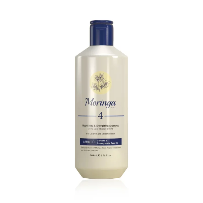 شامپو مغذی و انرژی‌بخش مورینگا اِمو 4 ضمن ترمیم و بازسازی موهای آسیب‌دیده، سبب تثبیت رنگ مو و افزایش درخشندگی موها می‌شود. همچنین این محصول با تقویت فولیکول‌ها، از ریزش موها جلوگیری کرده و با رطوبت‌رسانی عمقی و تامین مواد مغذی، مانع از ایجاد موخوره و شکنندگی تارهای مو می‌شود.