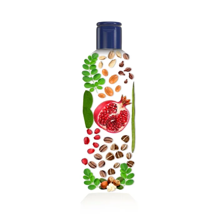 LáfaOil (لافا‌اُیل: ترکیبی انحصاری شامل روغن‌های گیاهی مورینگا، آرگان، هسته انگور و دانه آفتاب‌گردان و ویتامین A و E) + کافئین و روغن هسته انار
