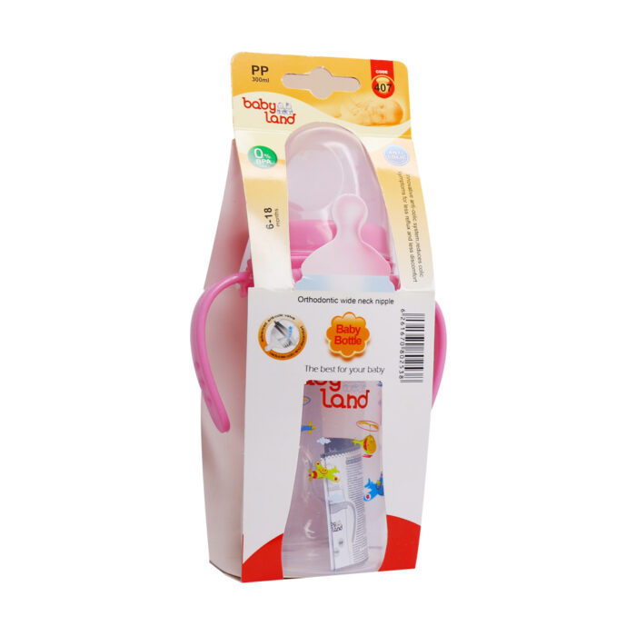 شیشه شیر دسته دار آنتی کولیک بیبی لند کد 407 حجم 300 میلی لیتر