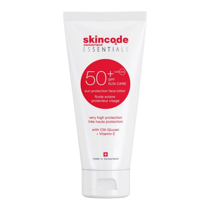 لوسیون ضد آفتاب اسکین کد با دارا بودن بافتی سبک و فاقد چربی حداکثر حفاظت را برای پوست در برابر طیف گسترده اشعه‌های UVA و UVB، استرس اکسیداتیو، رادیکالهای آزاد و آفتاب سوختگی فراهم می‌کند. همچنین این محصول اسکین کد موجب رطوبت رسانی، تقویت، ترمیم و بازسازی سلولی می‌شود. لاین Essentials محصولات اسکین کد، لاین پیشرفته محصولات مراقبتی و درمانی پوست برای رفع همه نیازهای پوستی خانم‌ها و آقایان می‌باشد که حاوی هر آنچه که پوست به آن نیاز دارد بوده و فاقد هر ترکیبی است که به پوست آسیب برساند. این محصولات حاوی ترکیبات استخراج شده از عصاره‌های گیاهی و مواد موثره حاصل از بیوتکنولوژی با خواص درمانی می‌باشد. این محصولات 100% عاری از مواد معطر، نگهدارنده، رنگ و مشتقات حیوانی بوده و به همین دلیل حتی برای حساس‌ترین پوست‌ها نیز قابل استفاده می‌باشد.