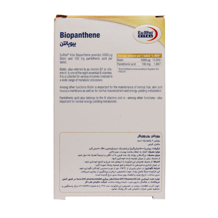 قرص بیوپانتن یوروویتال تامین کننده دوز بالای بیوتین و پانتوتنیک اسید است که به پرپشت شدن موها، احیای پوست و سفت و تقویت ناخنها کمک میکند.