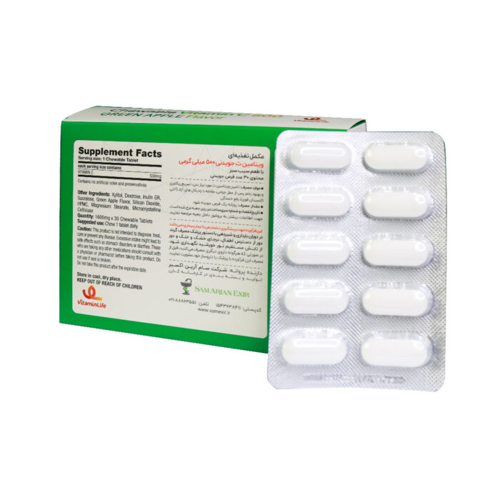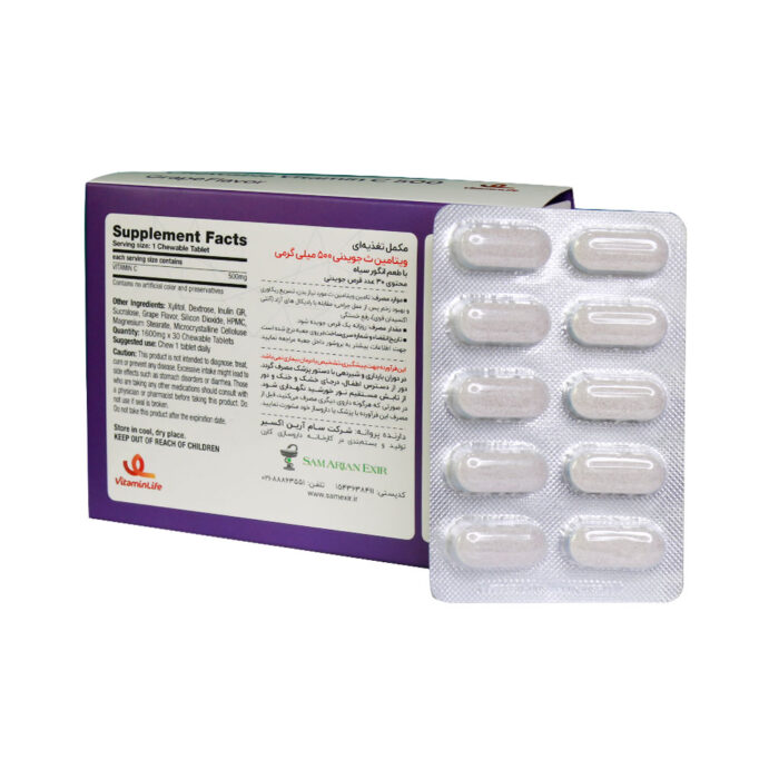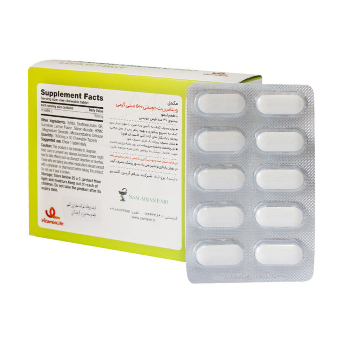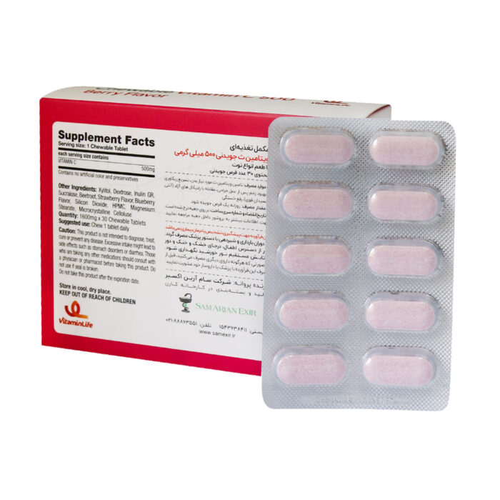 قرص جویدنی ویتامین C 500 میلی گرم ویتامین لایف 30 عدد