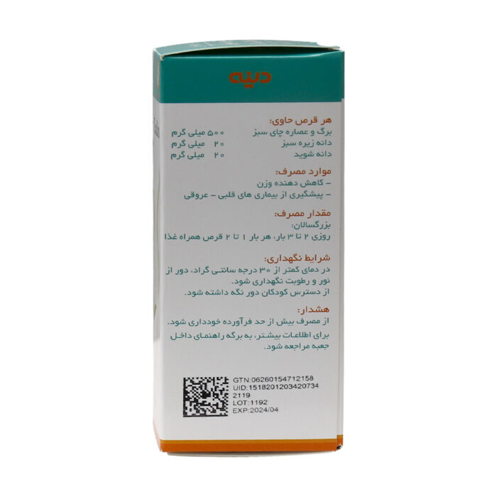 قرص گرین تیدین دینه کاهنده وزن، کلسترول و تری گلیسیرید می باشد. مصرف برگ چای سبز دارای اثرات مثبت در سلامت قلب و عروق است. مواد موثر آن مانند پلی فنل ها ریسک ابتلا به سرطان را کاهش می دهند. در نتیجه قرص گرین تیدین در پیشگیری از تصلب شرائین و بیماری های قلبی و کاهش ریسک ابتلا به سرطان موثر می باشد.