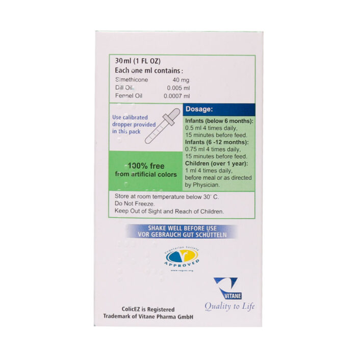 قطره کولیکز ویتان حاوی شوید و رازیانه بوده و با ترکیبات گیاهیاش موجب رفع نفخ و کولیک نوزادان میشود؛ همچنین فاقد هرگونه رنگ و طعم دهنده مصنوعی نیز است.