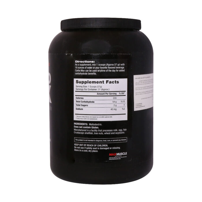 کربو مکس ماسل صد در صد از کربوهیدرات خالص (مالتودکسترین) تشکیل شده است. و مناسب برای افرادی با تیپ بدنی اکتومورف است.