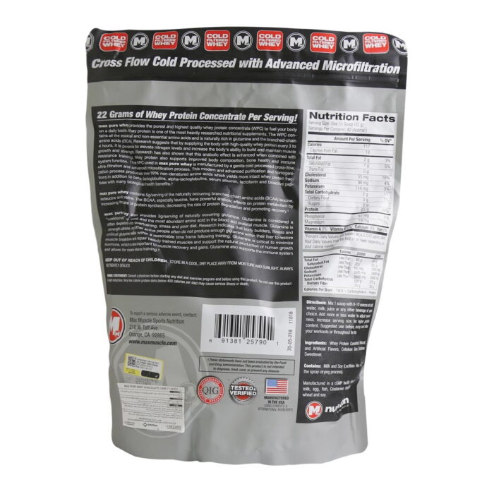پیور وی ۱۰۰ درصد مکس ماسل پروتئین ۱۰۰% کنسانتره وی با در صد خلوص بالا است. این مکمل سرشار از پروتئین وی خالص است که از ویژگیهای آن میتوان به افزایش رشد عضلات اشاره کرد.