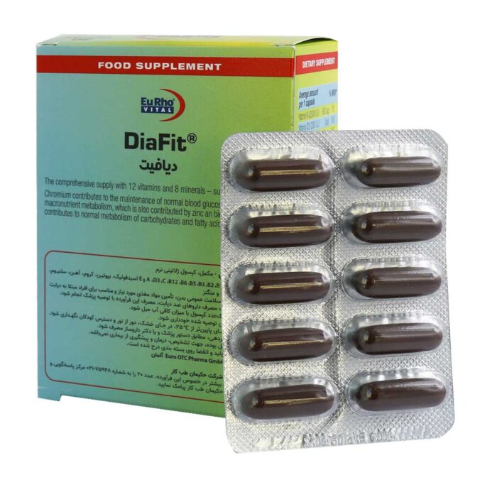 کپسول دیافیت یوروویتال یک مولتی ویتامین کامل است به ویژه برای بیماران دیابتی که نیاز بیشتری به این مواد تغذیه ای دارند. این مولتی ویتامین علاوه بر دارا بودن ویتامین های A ،D۳ ،E ،C و ویتامین های گروه B، انواع مواد معدنی مورد نیاز بدن شامل روی، کروم، مس، منگنز، آهن، ید و منیزیم را نیز دارا می باشد.