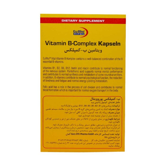 کپسول ویتامین ب کمپلکس یوروویتال حاوی تمامی ویتامین‌های گروه B است. ویتامین‌های گروه B دسته‌ای از ویتامین‌های محلول در آب هستند که دارای ویژگی‌های مشترک بوده، به همین دلیل تحت عنوان یکسان ب-کمپلکس تقسیم بندی می‌شوند که به حفظ سلامت و عملکرد سیستم عصبی و اعصاب بدن نیز کمک می‌کند.
