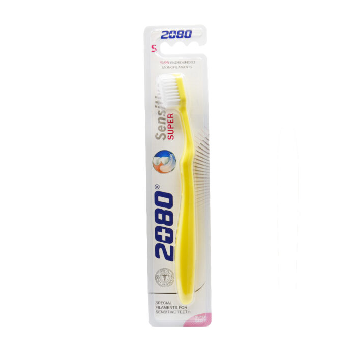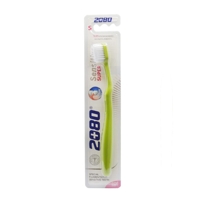 مسواک ۲۰۸۰ مدل Super Sensitive با برس نرم محصولی ایدهآل برای افرادی است که لثه بسیار حساسی دارند. جنس نخ مسواکهای این محصول بسیار نرم بوده و بنابراین هنگام استفاده هیچ صدمهای به اجزای دهان نمیزند.