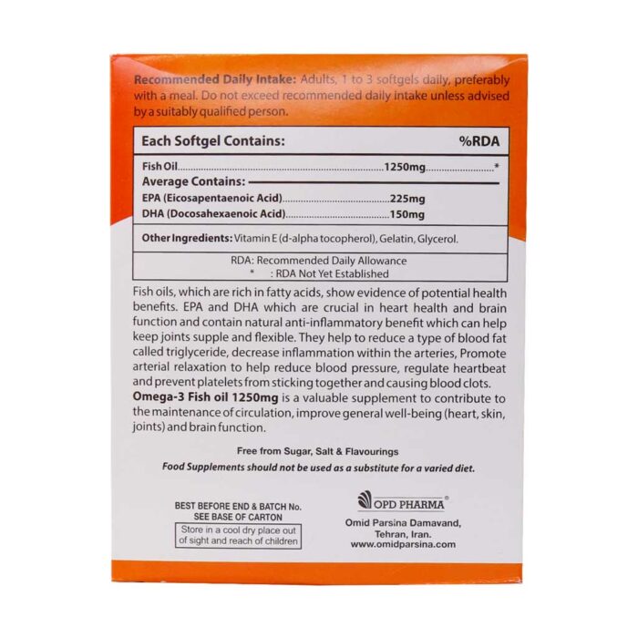 کپسول ژلاتینی امگا 3 بدون جیوه او پی دی فارما 1250 میلی گرم 30 عدد